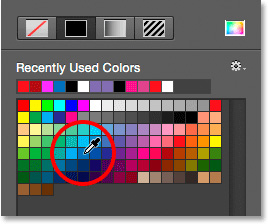 После выбора параметра «Чистый цвет», выбираем цвет для фигуры, кликнув по одному из образцов цвета. Цвета, которые вы недавно использовали, появятся в ряду «Недавно использованные цвета» (Recently Used Colors) над основными образцами: