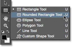 Давайте рассмотрим второй из инструментов группы «Фигуры» - «Прямоугольник со скругленными углами» (Rounded Rectangle Tool). Я выберу его на панели инструментов: