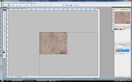 Цвет заднего фона не важен, мы вставим наш фон в новый слой. Наш задний фон мы возьмем из фотографии бетона, точнее текстуры бетона (найдено здесь, на портале бесплатных текстур Mayang's Free Textures). Само изображение очень большое для нашего холста, но ничего страшного. Сделайте копию из вашего интернет браузера и вставьте изображение в ваш документ.