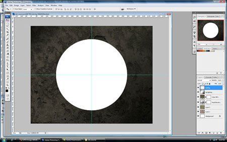 (Инструмент "Овальная область") и зажмите Shift+Alt затем кликните в центр документа где пересекаются наши направляющие. Так мы создадим правильную окружность с равным расстоянием от углов. Растяните круг диаметром примерно в 700 пикс, залейте выделение белым цветом.
