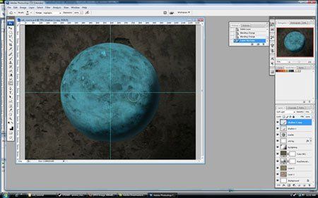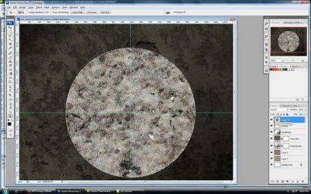 Я хочу чтобы сфера была в античном стиле, внешне как камень, для этого я выберу изображение с трещинами и контрастной текстурой. Мне понравился этот рисунок , я использую его, но вероятно понадобиться добавить еще контраста и текстуры. Наша первая текстура мрамора здесь. Скопируйте и вставьте, подгоните размер под нашу сферу. Сделайте выделение окружности, зажмите Ctrl а затем нажмите на иконку белой сферы в палитре слоев. Так у нас получится правильная форма мраморного узора с размером как наша сфера. Чтобы удалить лишнюю часть инвертируйте выделение командой Ctrl+Shift+I, в палитре слоев должен быть выделен слой с текстурой мрамора, затем нажмите Backspace.