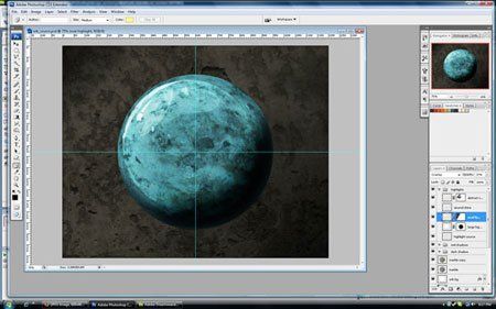 Нам необходимо найти в интернете изображение блестящей сферы. Сначала автор исследовал настоящее изображение - как на сферу ложится свет и тень. Автор выбрал это изображение за основу, из The Dimensions of Color. Чтобы добиться желаемого, можно было обойтись и просто инструментом Градиент, но он использовал Перо, Затемнитель, Маску градиента, и если понадобиться Овальное выделение.