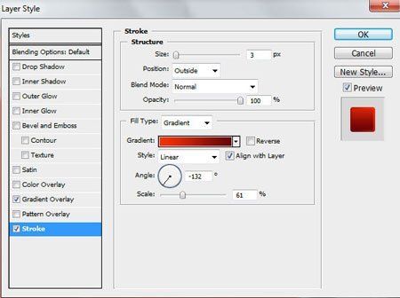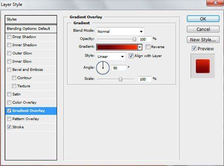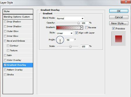 Кликните на кнопку "Добавить стиль слоя" на панели слоев и добавьте "Наложение градиента" для слоя с прямоугольником, настройки даны ниже: