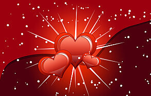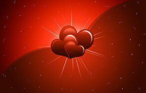 Объедините в группу все слои с сердцами (клик по слою с зажатой клавишей Ctrl, чтобы выделить нужные слои и перетащите их на иконку "Создать новую группу" на панели слоев). Слейте все слои составляющие сердце (Ctrl+E) и создайте две копии получившегося слоя. Затем, используя, инструмент "Свободная трансформация" (Ctrl+T), измените размеры слоев и поместите их так, как показано ниже: