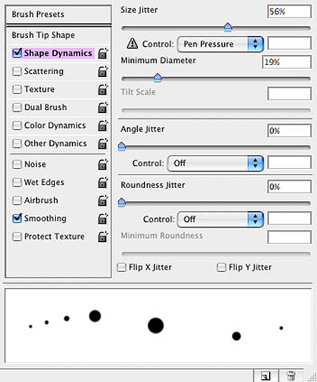 Совет переводчика: Я увеличивала значение Size Jitter и работала дополнительно с настройками вкладки Scattering – Scatter и Count. Так быстрее получается заполнять пространство пузырьками. Кроме того, можно уменьшить размер кисти. Экспериментируйте!