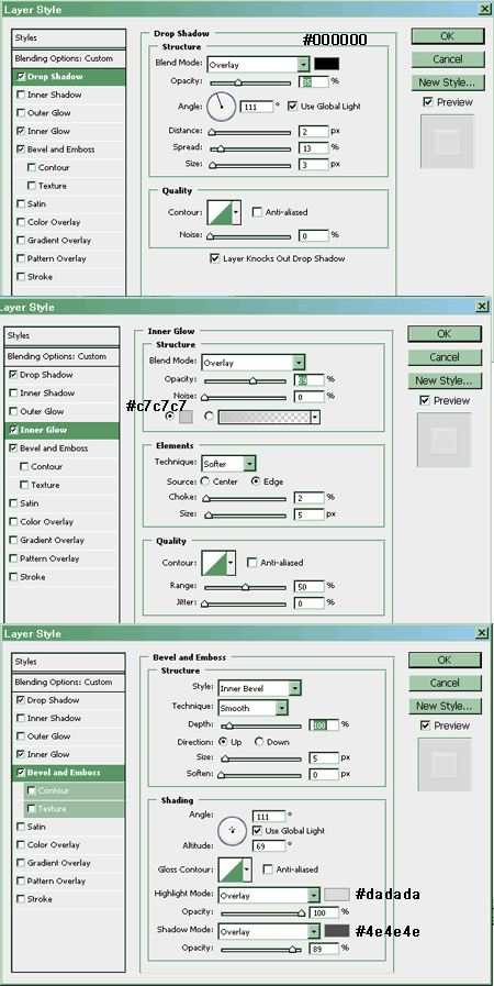 Совет переводчика: Автор урока предлагает самостоятельно поработать с настойками Тени, Внутреннего свечения и Теснения. Я уже попробовала и предоставляю Вам свои варианты настроек. Применяйте, смотрите, пробуйте….