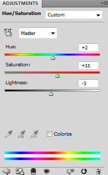 Перемещаем ползунки вправо, чтобы увеличить Hue (Цветовой тон) и Saturation (Насыщенность), затем перемещаем ползунок Lightness (Яркость) влево, чтобы уменьшить значение.