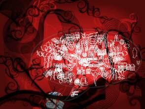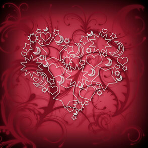 Заполните различными узорными фигурами всю внутреннюю область большого сердца. При необходимости поворачивайте фигуры, используя свободное трансформирование (Ctrl+T).