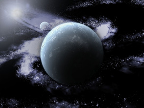 Интересно, с точки зрения техники, спасибо. Однако хочу заметить, что бросается в глаза нереальность: чтобы тень от планет была такая заметная и такой формы, источник освещения должен быть рядом, в пределах размера планетарной системы, а по размерам галактики ясно, что она должна быть невообразимо далеко от этого места:), то есть на место галактики "просится" местное солнце.