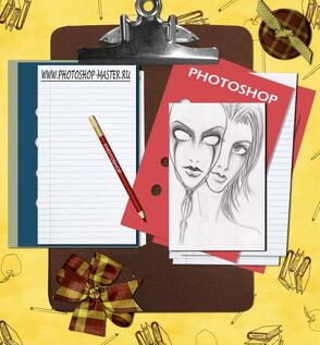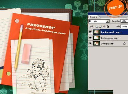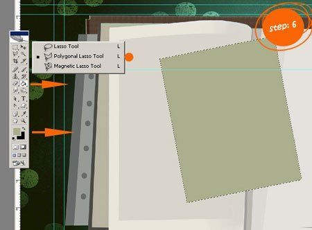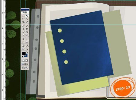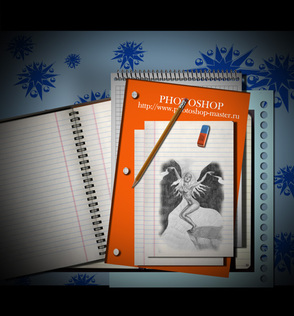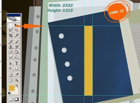 Шаг 11: Обратите внимание на лист блокнота. Он создан при помощи группы инструментов выделения "Область", а именно Rectangular Marquee Tool