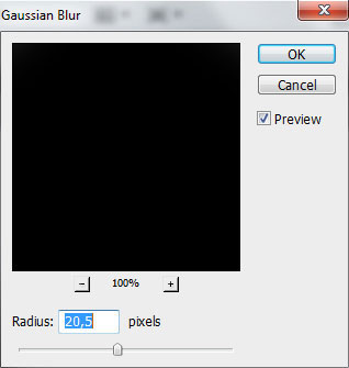 Применяем к слою следующий фильтр: Filter - Blur - Gaussian Blur (Фильтр - Размытие - Размытие по Гауссу).