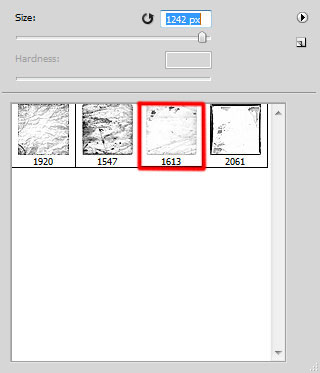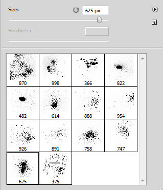 Создаем новый слой и выбираем следующую кисть черного цвета с набора c130_splatter.