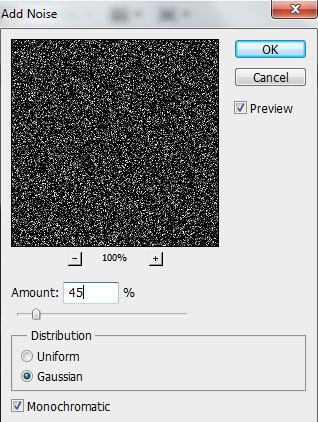 Применяем фильтр: Filter - Noise - Add Noise (Фильтр - Шум - Добавить шум).