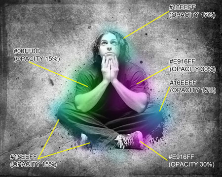 Используем эту кисть, чтобы добавить цвета, как показано ниже (Opacity - Непрозрачность):