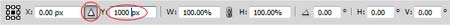 Шаг 36. Идём Редактирование – Свободная трансформация (Edit > Free Transform). В верхней панели настроек нажмите кнопку Относительное положения центра преобразования (Use relative position for reference point), далее выставьте Y ось на 1000 px. Нажмите Enter, чтобы применить выставленные значения.