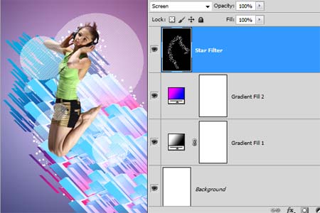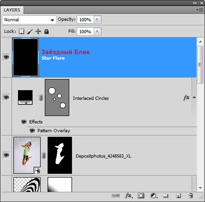 Переименуйте этот слой на “Звёздный фильтр” и поменяйте режим наложения на Осветление (Screen).