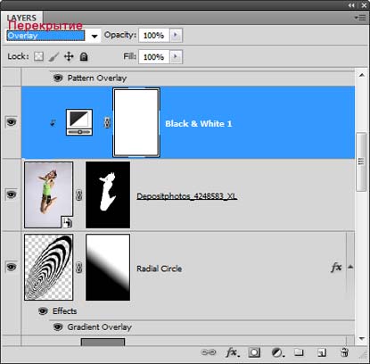 Поменяйте режим наложения на Перекрытие (Overlay).