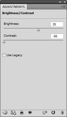 Примените значение Яркости (Brightness) 25 и Контрастности (Contrast) –50. Убедитесь, что галочка в окошке Использовать прежние (Use Legacy) не стоит.
