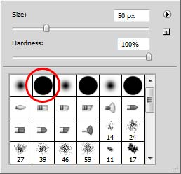 (Brush tool) и поменяйте кисть на жёсткую круглую кисть.