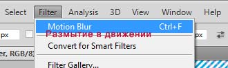 Идём Фильтр – Размытие в движении (Filter > Motion Blur) или нажимаете клавиши Ctrl +F, чтобы повторить ещё раз действие фильтра.