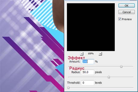 Идём Фильтр – Резкость – Контурная резкость (Filter > Sharpen > Unsharp Mask). Установите значение Эффекта (Amount) на 200%, далее, отрегулируйте Радиус (Radius) чтобы ваш эффект звёздный фильтр выглядел резче, как на скриншоте ниже.