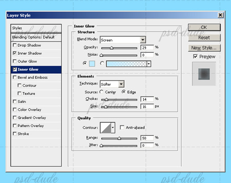 Добавляем Layer Style (Стиль слоя), для этого двойной щелчок по слою с дракончиком, там выставляем следующие параметры, ориентируясь на скриншоты.