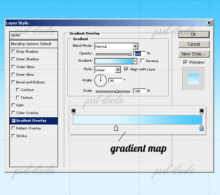 Прим.переводчика: настройки для градиента – цвет #dff5ff, позиция 30%; цвет #47c6fd, позиция 100%.