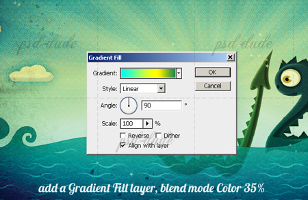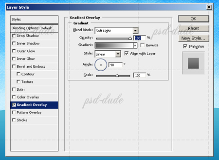 Нарисуем море на заднем плане на слое Background (Фон). Для этого добавляем стиль слоя Gradient Overlay (Наложение градиента).