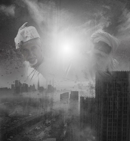 (radial gradient от белого до прозрачного), нарисуйте источник света между двумя мужчинами.