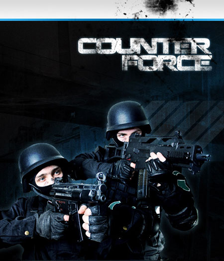 ШАГ 13. Скачайте шрифт Coalition и напечатайте название вашей видео игры, текст расположите в правой верхней части над командой спецназа:
