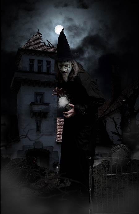 В этом шаге, мы проведём цветовую коррекцию к изображению колдуна, чтобы совместить его с окружающей атмосферой.
