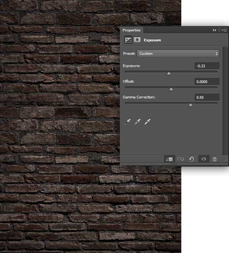 3) Создайте корректирующий слой Экспозиция (Exposure), установив значение Экспозиции (Exposure) на -0.33, а значение Гаммы коррекции (Gamma Correction) на