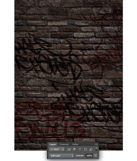 2) Далее, поменяйте режим наложения для слоя с граффити на Мягкий свет (Soft Light).