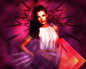 Используйте эту кисть, чтобы закрасить фон, как на картинке ниже. Цвет кисти # F941FF. Поместите этот слой под слоем модели.