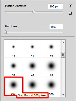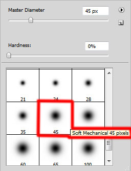 На следующем новом слое мы выбираем мягкую круглую Кисть