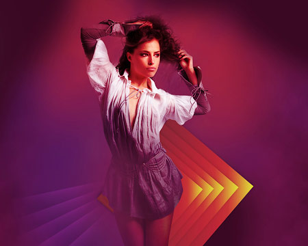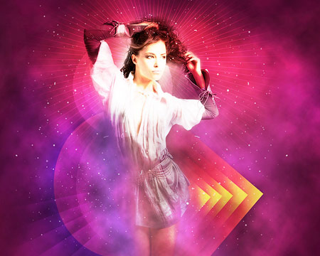 Используйте эту кисть, чтобы закрасить фон, как на картинке ниже. Цвет кисти # F941FF. Поместите этот слой под слоем модели.
