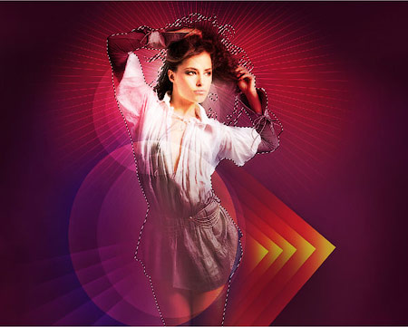 Создайте новый слой (Ctrl + Shift + N) и снова используйте мягкую круглую кисть которая упоминалась выше, чтобы сделать темный фон вокруг модели. Цвет кисти # 3A0822. Поместите слой под слоем модели.