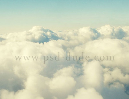 Для начала добавим красивое небо с облаками в качестве фона для нашего коллажа. Дважды примените данную текстуру, стирая с помощью маски переход от одной текстуры к другой.
