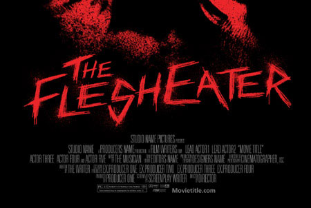 С помощью созданной кисти, напишите название фильма. Я написал "The Flesheater" на основе грубых и рваных линий.