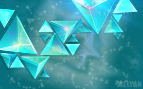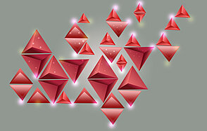 Сгруппируйте все слои каждого тетраэдра, зажав клавишу Ctrl, выделяя их и, удерживая левую кнопку мыши, перетаскивайте выделенные слои на значок группы внизу палитры слоёв. Теперь нужно сделать много копий подготовленных групп с тетраэдрами. Некоторые из них трансформируйте с помощью Свободной трансформации (Free Transform (Ctrl+T)). При необходимости меняйте направления градиента на лицевых треугольниках чтобы изменить тени. Для этого в стилях слоя меняйте направление градиента на противоположный.