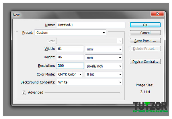 Первым делом нам нужно создать документ с необходимыми параметрами. Это очень важно, ибо иначе могут возникнуть проблемы с печатью. То есть напечатать-то вы напечатаете, но качество оставит желать лучшего. Стандартные параметры я привел ниже, хотя вы, конечно, можете немного изменить их на свой вкус.