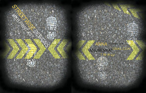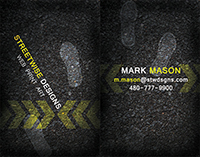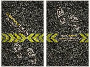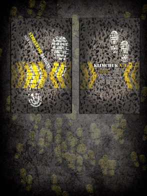 На новом слое добавим в проект отпечатки ботинок с помощью кистей, которые можно найти в интернете. Меняем режим наложения на Overlay (Перекрытие) и лицевая часть визитки готова!