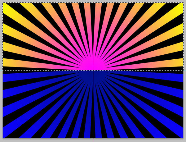 Выделите нижнюю часть изображения инструментом Прямоугольное выделение (Rectangular Marquee) и залейте его другим радиальным градиентом от цвета #00108A к цвету #0C02FD.