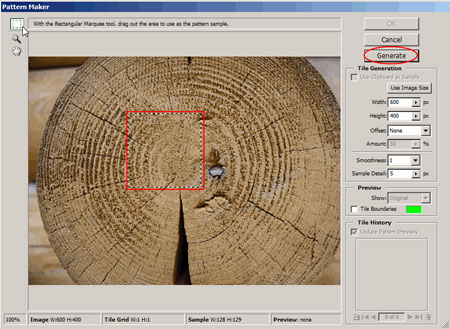 Этот фильтр работает очень просто - вы показываете ему участок, из которого вы намереваетесь сделать текстуру, затем нажимаете кнопку "Сформировать" и фотошоп предложит вам до 20 различных вариантов текстур. Вам останется только выбрать понравившийся и сохранить его в качестве узора.