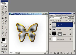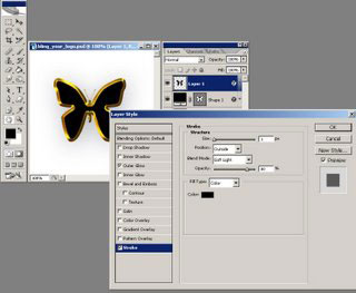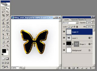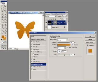 (U). Выберите фигуру бабочки. Теперь нарисуйте бабочку на холсте, а затем 2 раза щелкните по слою (в палитре слоев), чтобы открыть стили слоя.