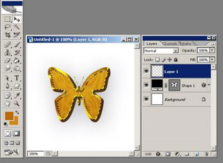 Создайте новый слой и установите его над слоем с формой бабочки. Ctrl + клик по слою с бабочкой, чтобы сделать выделение.
