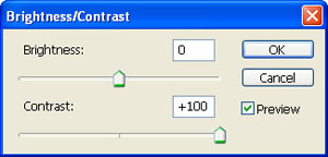 Теперь выполните Image > Adjustments > Brightness/Contrast... и поменяйте настройки так: