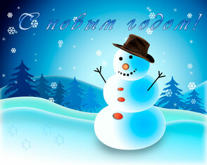 Рисуем новогоднюю открытку со снеговиком