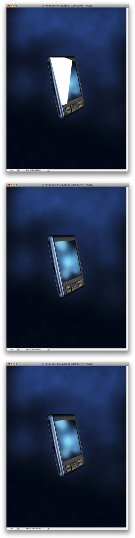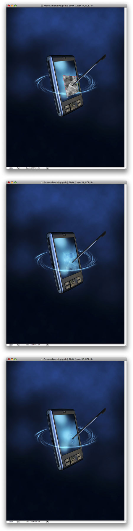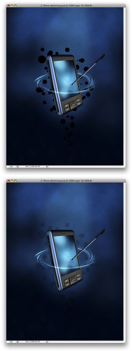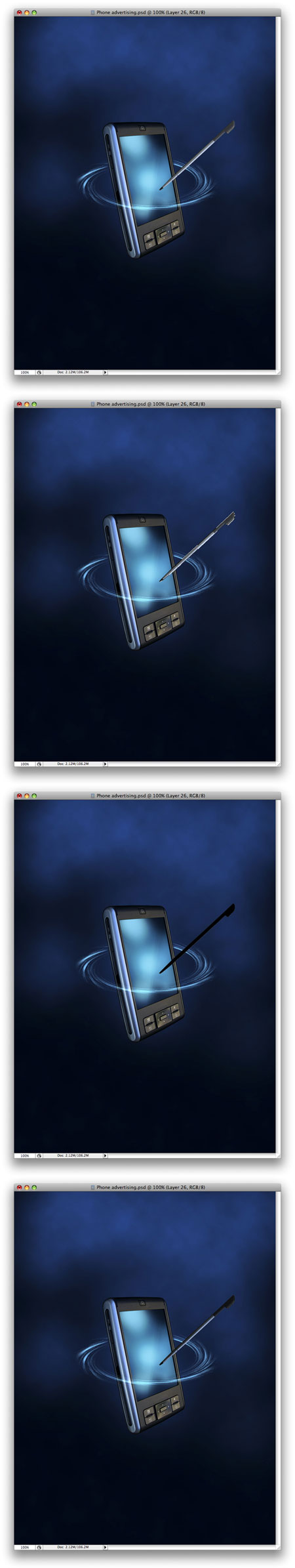 Продублируйте слой КПК еще 5 раз. Повторите шаг 35 и если нужно шаг 36, чтобы добавить больше размытия. Также измените Opacity (непрозрачность слоя) всех слоев так, чтобы получился эффект постепенного исчезновения.