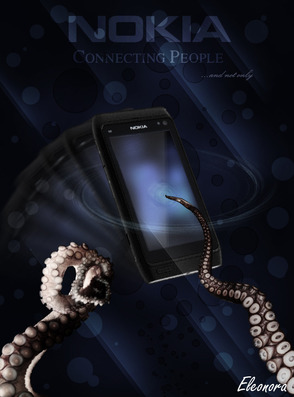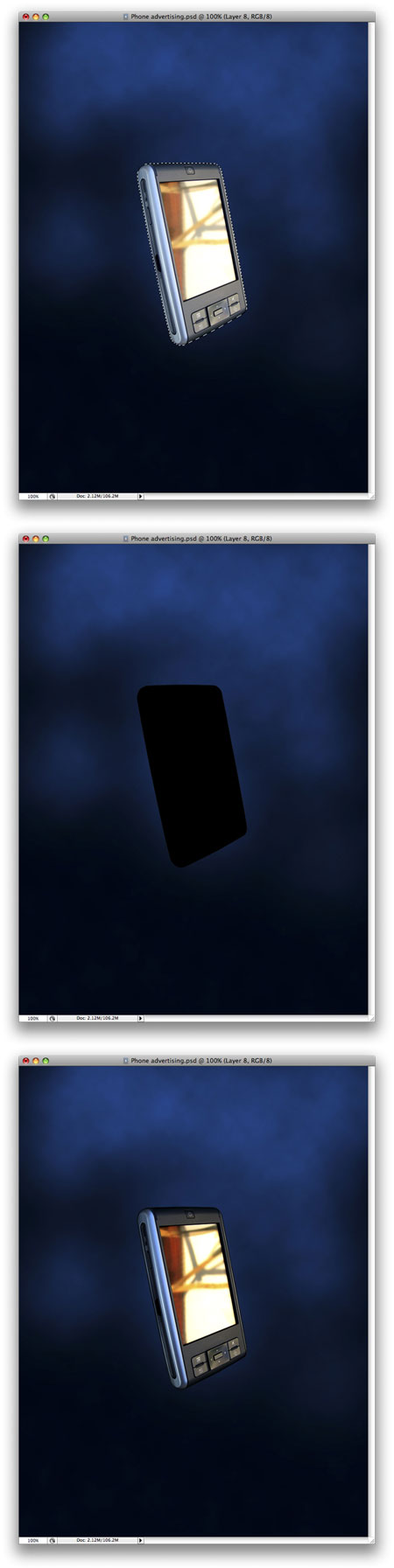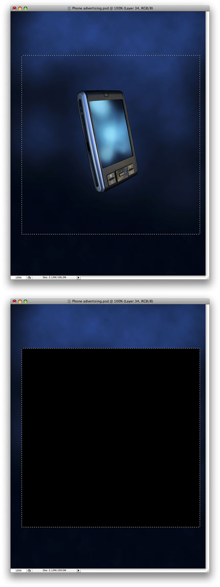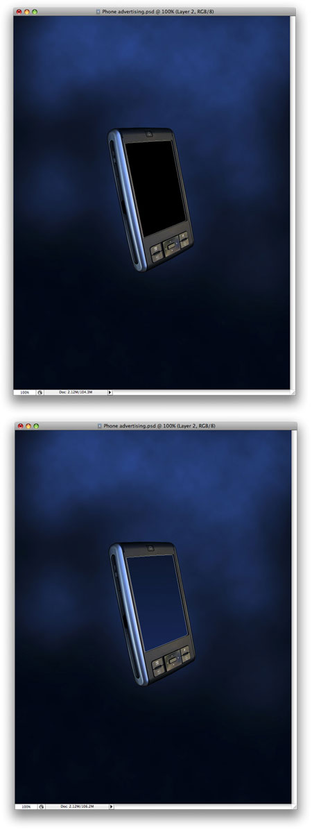 Выделите слой с КПК. Не снимая выделения, создайте новый слой и залейте выделение черным цветом. Установите для этого слоя режим наложения Soft Light (Мягкий свет).